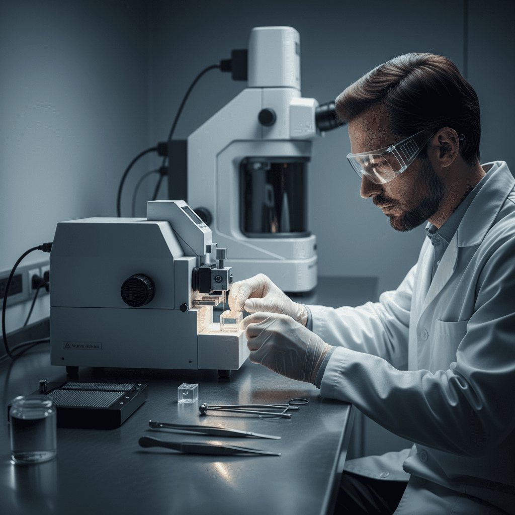 - Use ferramentas bem calibradas: A microtomia deve ser realizada com um microtomo calibrado para garantir cortes uniformes.